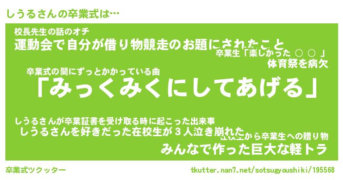 | ツイッター | しうるさんのツイッターID『konnyaku_nyan』 |