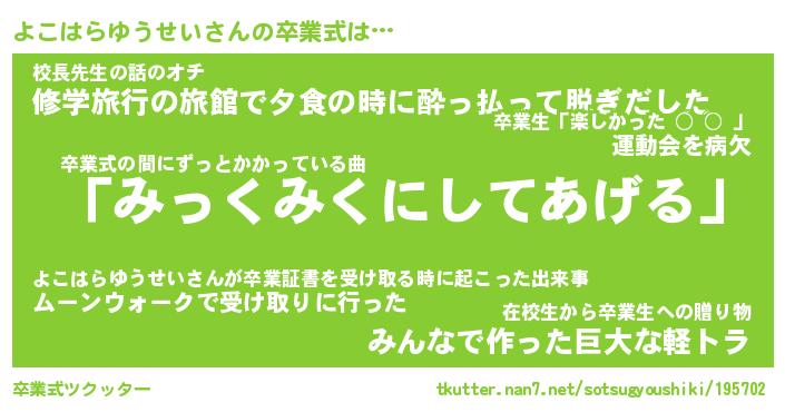 | 胡散臭い通販商品みたいなあだ名 | 『必ず成功するブレスレット…その名も「よこはらゆうせい」』 |