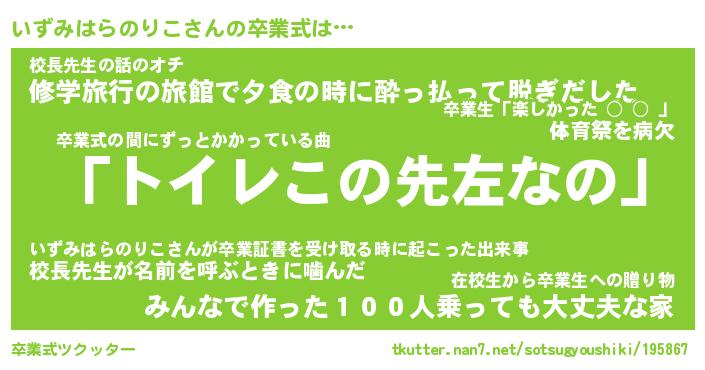 | 伝説のあだ名 | 『伝説のスナイパーいずみはらのりこ』 |