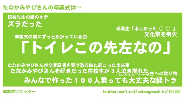 | 胡散臭い通販商品みたいなあだ名 | 『必ず成功するブレスレット…その名も「たなかみやび」』 |