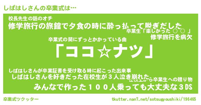 | ヘコむあだ名 | 『しばっふぃ~』『酢こんぶ』 |