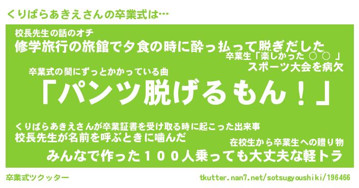 | 伝説のあだ名 | 『不死鳥のスナイパーくりばらあきえ』 |