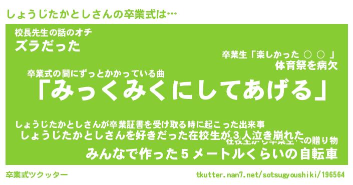 | 伝説のあだ名 | 『伝説のスナイパーしょうじたかとし』 |