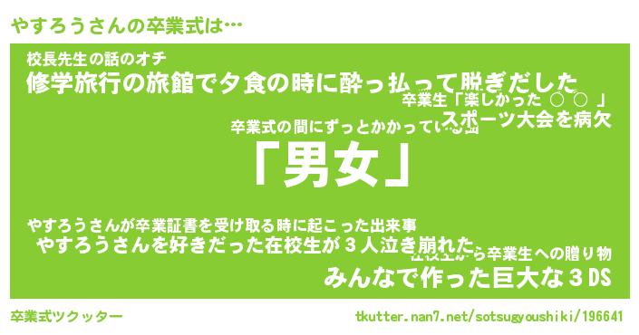 | 意味不明あだ名 | 『ペロリンやすろう』『永久保存やすろう』 |