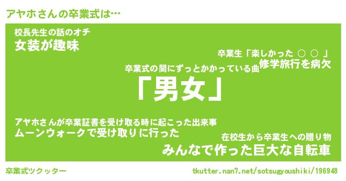 | ピコ太郎風あだ名 | 『アコ二郎』『ピア一郎』『アヤ六郎』 |