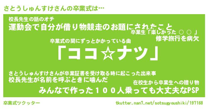 | 胡散臭い通販商品みたいなあだ名 | 『モテモテ間違いなし霊験あらたかなお札…その名も「さとうしゅんすけ」』 |