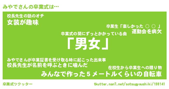 | 男性向けラノベタイトル風あだ名 | 『みやでの憂鬱』 |