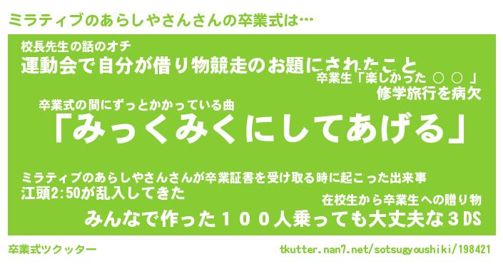 | ピコ太郎風あだ名 | 『ミコ二郎』『ピミ八郎』『ミラ十郎』 |