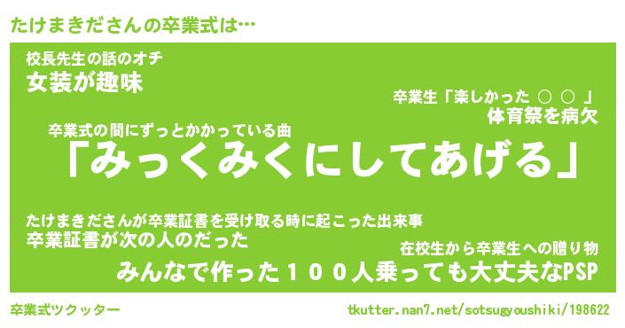 | 胡散臭い通販商品みたいなあだ名 | 『必ず成功する霊験あらたかなお札…その名も「たけまきだ」』 |
