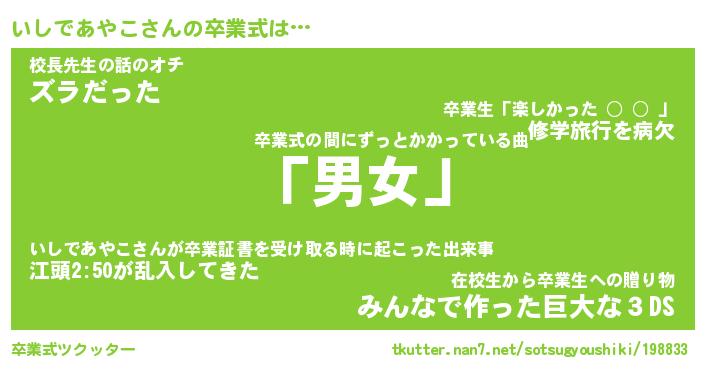 | ピコ太郎風あだ名 | 『イコ四郎』『ピイ三郎』『イシ太郎』 |