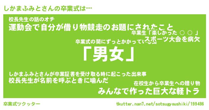 | 胡散臭い通販商品みたいなあだ名 | 『必ず成功するブレスレット…その名も「しかまふみと」』 |