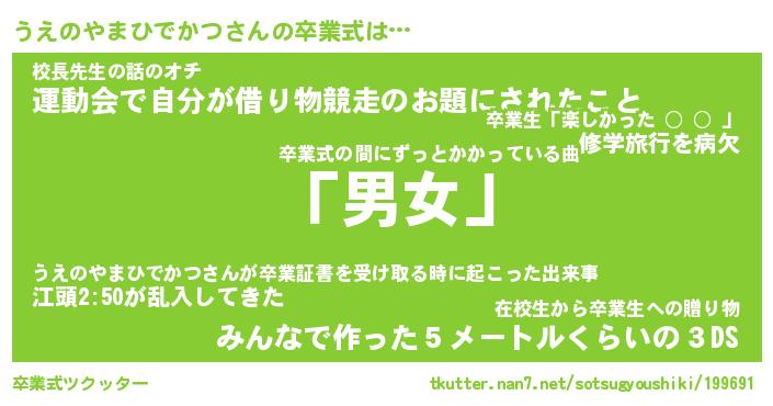 | 男性向けラノベタイトル風あだ名 | 『うえのやまひでかつの憂鬱』 |