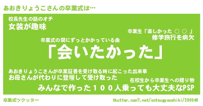 | 伝説のあだ名 | 『不死鳥のスナイパーあおきりょうこ』 |