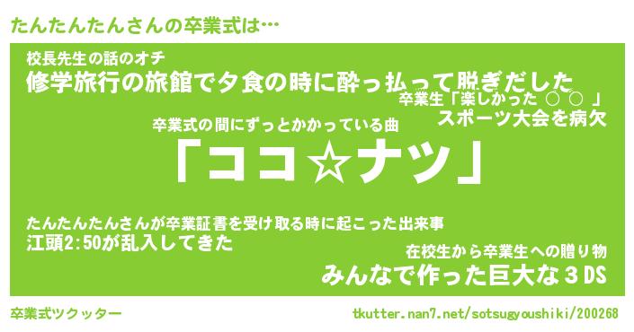 | ヘコむあだ名 | 『たんっふぃ~』『なまこ酢』 |