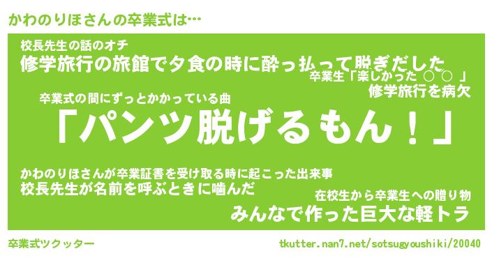 | ヘコむあだ名 | 『かわにゅー』『牛乳』『かわを』 |
