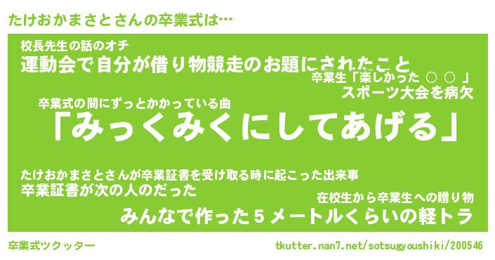 | ヘコむあだ名 | 『たけもー』『なまこ酢』『たけっ子』 |