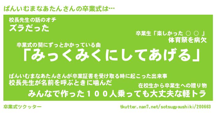 | 伝説のあだ名 | 『伝説のスナイパーぱんいむまなあたん』 |