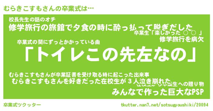 | 男性向けラノベタイトル風あだ名 | 『むらきこすもの憂鬱』 |
