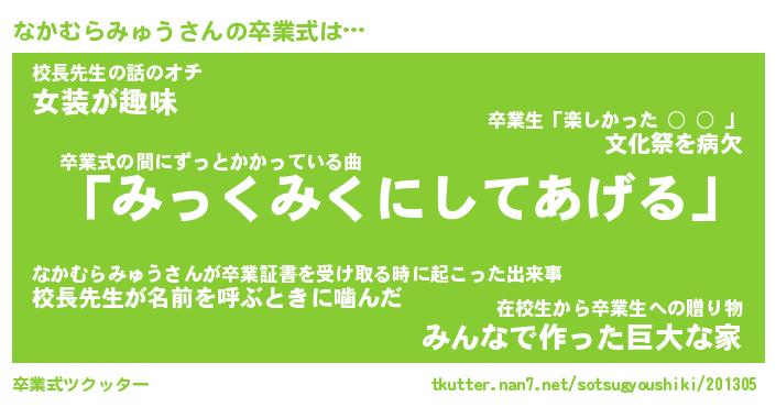 | 肩書あだ名 | 『なかむらみゅう社長』 |