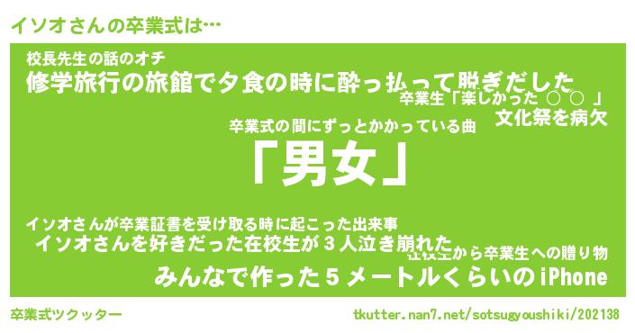 | 男性向けラノベタイトル風あだ名 | 『イソオの憂鬱』 |