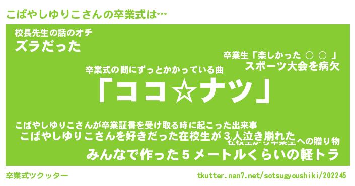 | 伝説のあだ名 | 『不死鳥のスナイパーこばやしゆりこ』 |