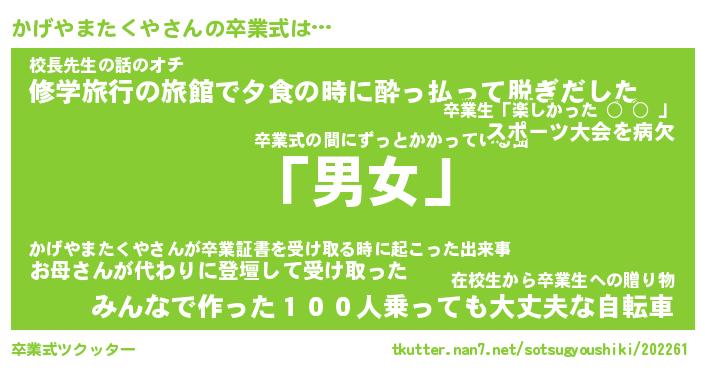 | 意味不明あだ名 | 『ペロリンかげやまたくや』 |