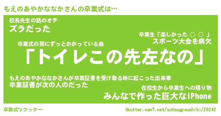 | 2回繰り返すあだ名 | 『もえもえ』『ももええ』『なあなあ』 |