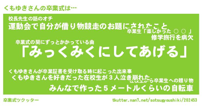 | 胡散臭い通販商品みたいなあだ名 | 『必ず成功する霊験あらたかなお札…その名も「くもゆき」』 |