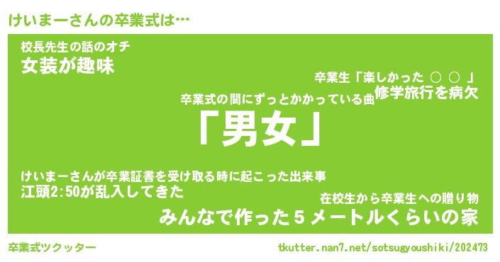 | 意味不明あだ名 | 『ペロリンけいまー』『永久保存けいまー』 |