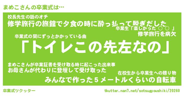 | ピコ太郎風あだ名 | 『マコ二郎』『ピマ八郎』『マメ史郎』 |