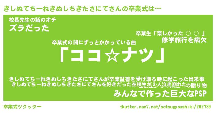 | ツイッター | きしぬてちーねきぬしちきたさにてさんのツイッターID『katatsumuri_idle』 |