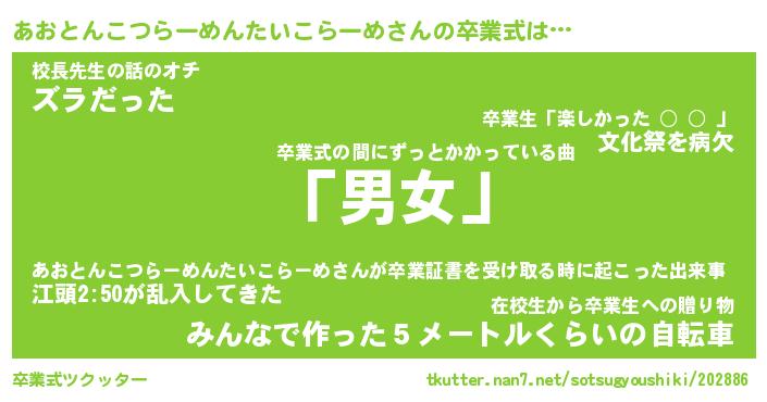 | 胡散臭い通販商品みたいなあだ名 | 『必ず成功するブレスレット…その名も「あおとんこつらーめんたいこらーめ」』 |