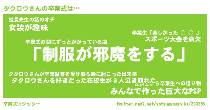 | 意味不明あだ名 | 『ペロリンタクロウ』『永久保存タクロウ』 |
