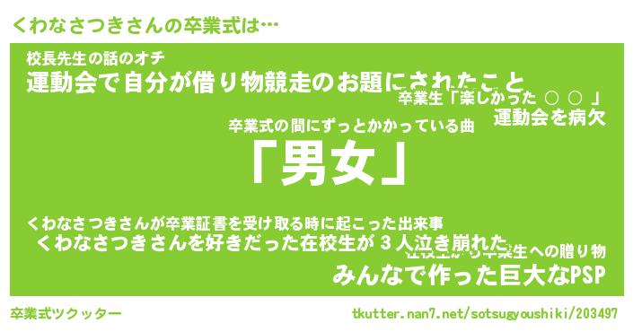 | 男性向けラノベタイトル風あだ名 | 『くわなさつきの憂鬱』 |