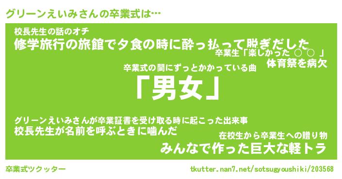 | 伝説のあだ名 | 『伝説のスナイパーグリーンえいみ』 |