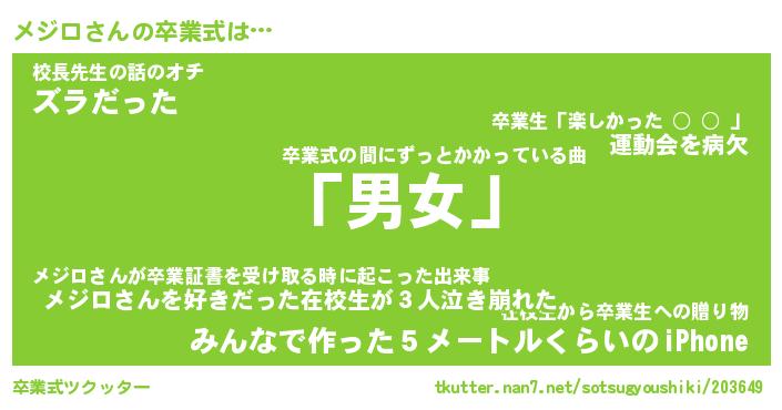 | ピコ太郎風あだ名 | 『メコ二郎』『ピメ八郎』『メジ史郎』 |