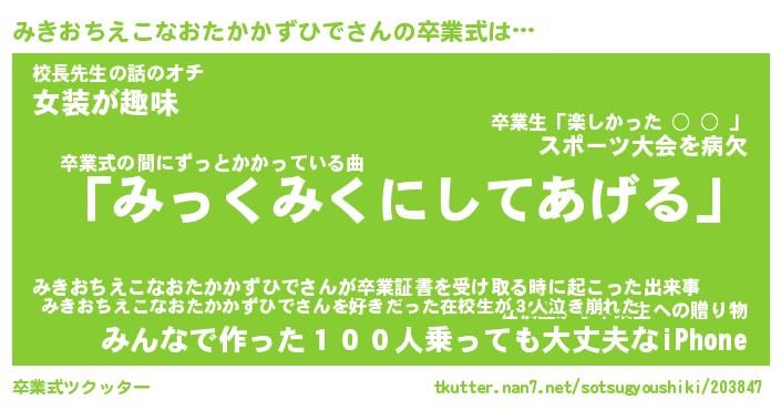 | 意味不明あだ名 | 『ペロリンみきおちえこなおたかかずひで』 |