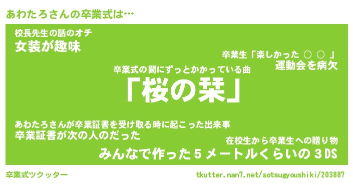 | 意味不明あだ名 | 『ペロリンあわたろ』『永久保存あわたろ』 |