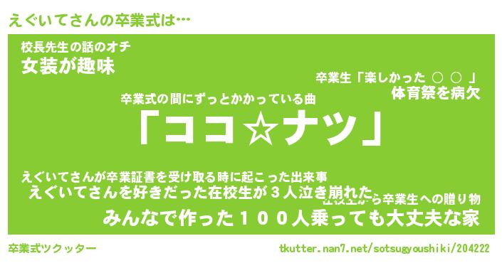| ヘコむあだ名 | 『えぐにー』『酢こんぶ』『えぐ太郎』 |