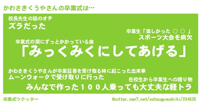 | 胡散臭い通販商品みたいなあだ名 | 『必ず成功するブレスレット…その名も「かわさきくうや」』 |
