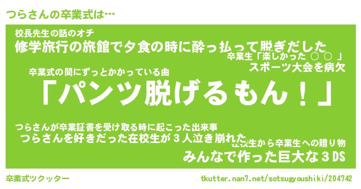 | ヘコむあだ名 | 『つらにゅー』『豆乳』『つら太郎』 |