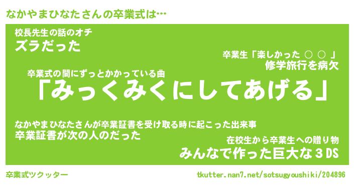 | ヘコむあだ名 | 『なかにゅー』『酢こんぶ』『なかを』 |