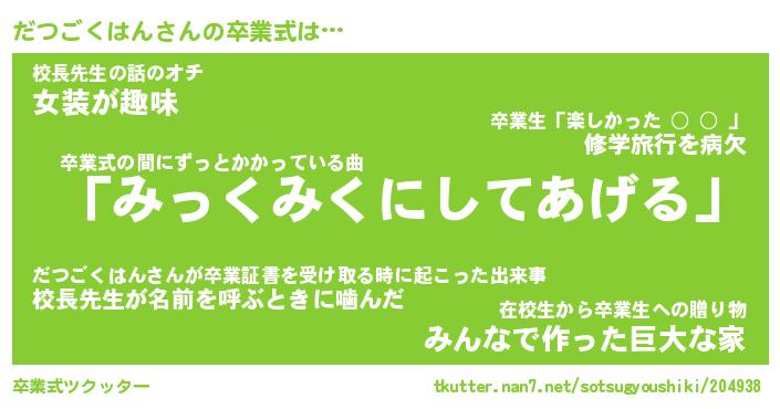 | 番長 | だつごくはん、またの名を・・・!『だっちゅーのだつごくはんさん』 |