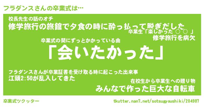 | ヘコむあだ名 | 『フラにー』『なまこ酢』『フラお』 |