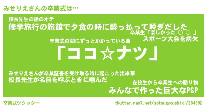 | ヘコむあだ名 | 『みせもー』『豆乳』『みせお』 |