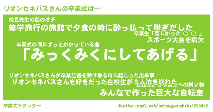 | 伝説のあだ名 | 『伝説のスナイパーリオンセネバス』 |