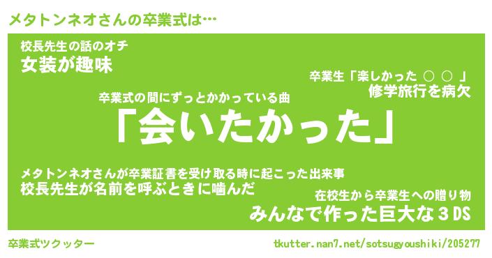 | ヘコむあだ名 | 『メタにゅー』『酢こんぶ』『メタを』 |