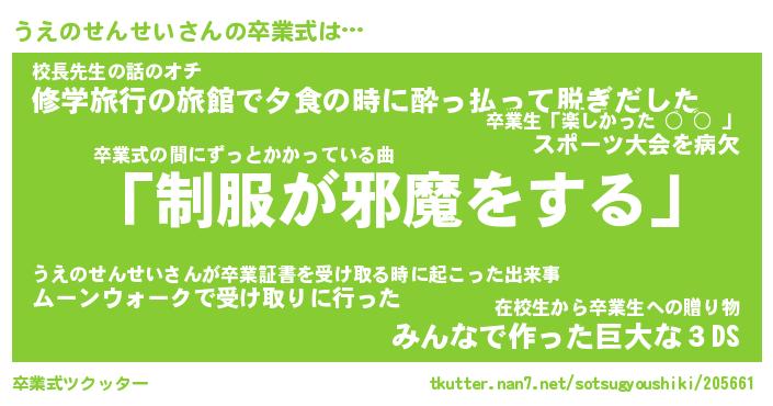 | 胡散臭い通販商品みたいなあだ名 | 『億万長者になれるブレスレット…その名も「うえのせんせい」』 |