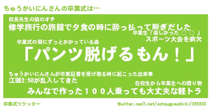 | ヘコむあだ名 | 『ちゅにー』『牛乳』『ちゅ太郎』 |