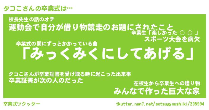 | ヒーロー風カッコイイあだ名 | 『スーパータココ』『ウルトラタコこマン』 |